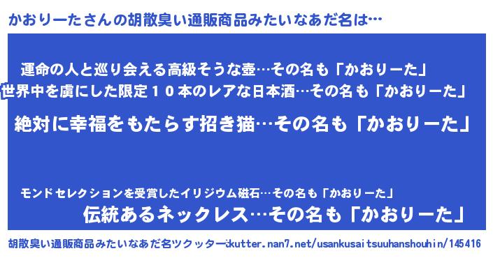 | 伝説のあだ名 | 『聞きしに勝る吟遊詩人かおりーた』 |