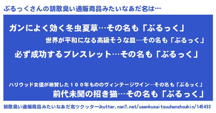 | 男性向けラノベタイトル風あだ名 | 『ぶるっくの憂鬱』 |