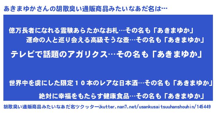 | 意味不明あだ名 | 『自称あきまゆか』『ペロリンあきまゆか』 |