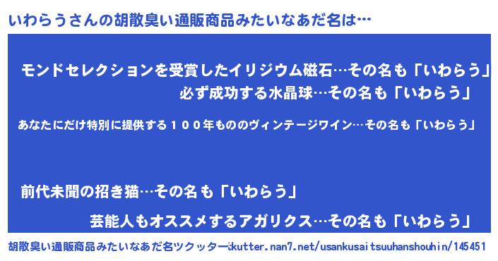 | ヘコむあだ名 | 『いわふぇ~』『いわらう(苦笑)』 |