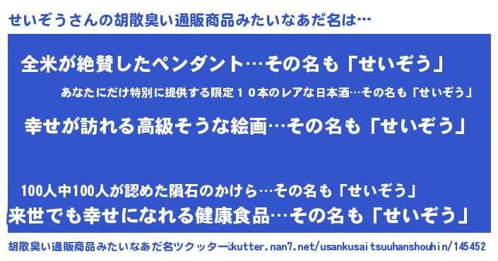 | 意味不明あだ名 | 『せいぞうフォーエバー』 |