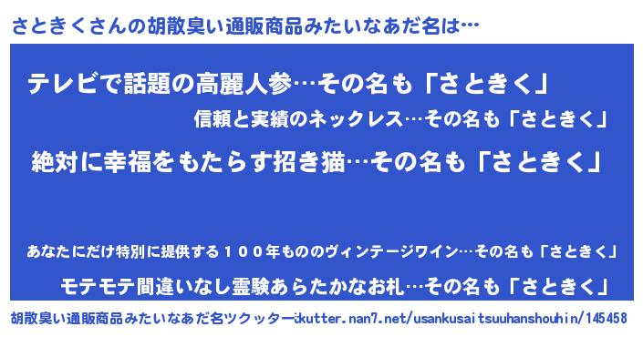 | 意味不明あだ名 | 『永久保存さときく』『自称さときく』 |