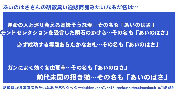 | 男性向けラノベタイトル風あだ名 | 『あいのはさの憂鬱』 |