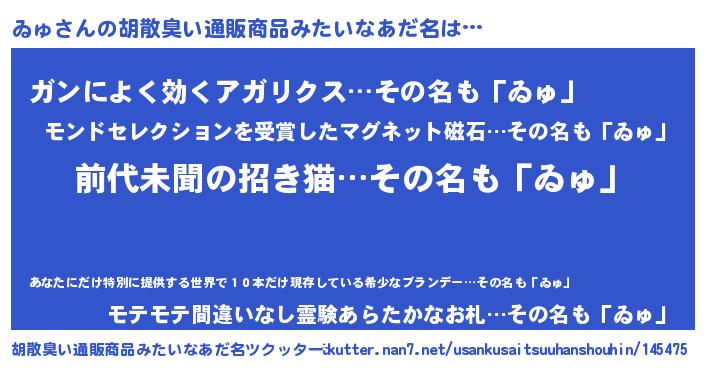 | ヘコむあだ名 | 『ゐゅ(笑)』『ゐゅにゅー』 |