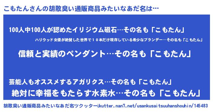 | ヘコむあだ名 | 『こもぷりん』『こもたん(震え声)』 |