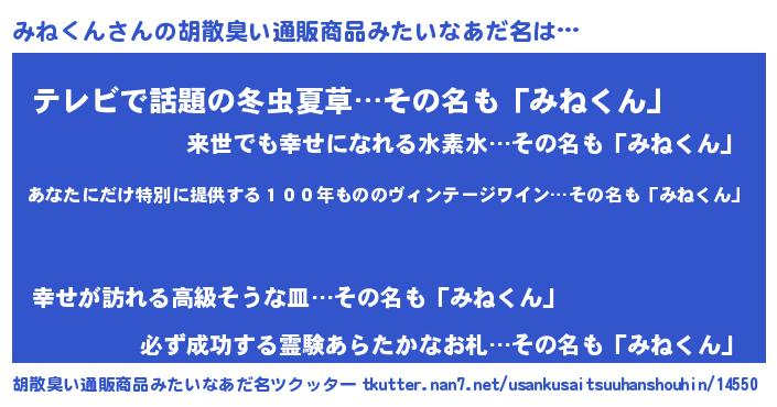 | 意味不明あだ名 | 『住所不定無職みねくん(9歳)』 |