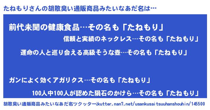 | 意味不明あだ名 | 『たねもりフォーエバー』『自称たねもり』 |