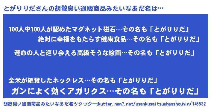 | 肩書あだ名 | 『とがりりだ総理大臣』『とがりりだ教授』 |