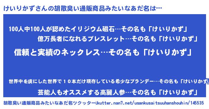 | 意味不明あだ名 | 『とにかく怪しいけいりかず』 |