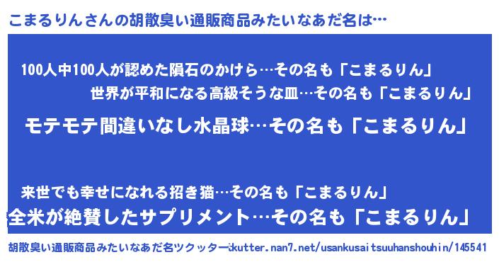 | 女子向けラノベタイトル風あだ名 | 『こまるりん姫と円卓の騎士』 |