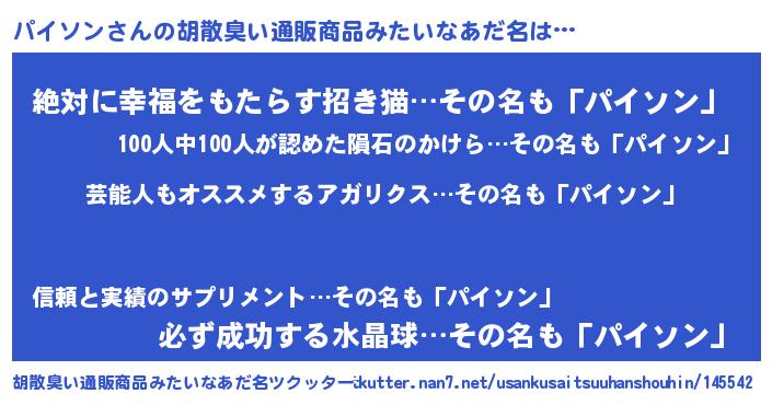 | ヘコむあだ名 | 『パイソン(笑)』『パイにゅー』 |