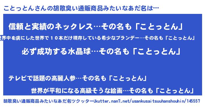 | ヘコむあだ名 | 『ことにゅー』『こと太郎』『豆乳』 |