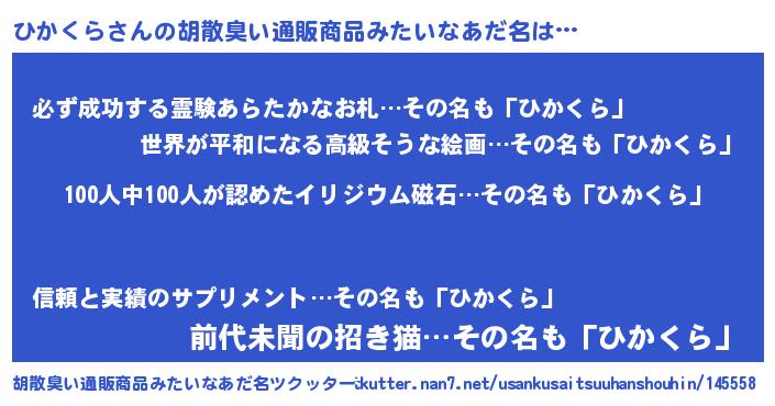 | ヘコむあだ名 | 『ひかにゅー』『ひかくら(震え声)』 |