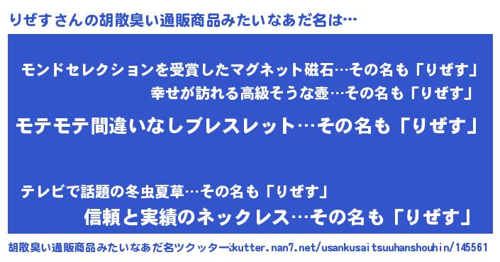 | ヘコむあだ名 | 『りぜにー』『りぜお』『酢こんぶ』 |