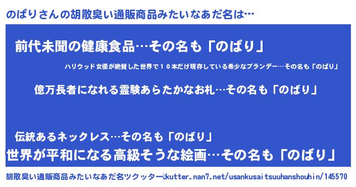 | 肩書あだ名 | 『のばり機長』『のばり御曹司』 |