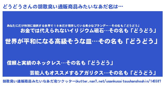 | 意味不明あだ名 | 『どうどうフォーエバー』『自称どうどう』 |
