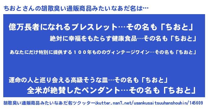 | 意味不明あだ名 | 『住所不定無職ちおと(1歳)』 |