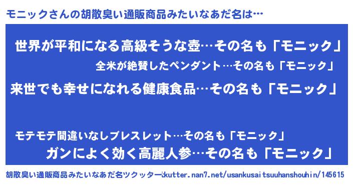 | 意味不明あだ名 | 『永久保存モニック』『自称モニック』 |