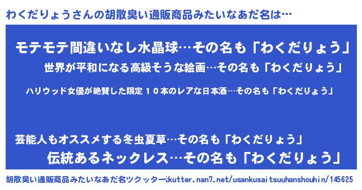 | 意味不明あだ名 | 『住所不定無職わくだりょう(65歳)』 |