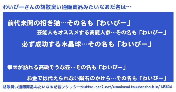 | 意味不明あだ名 | 『めかぶ科わいぴー属』『自称わいぴー』 |