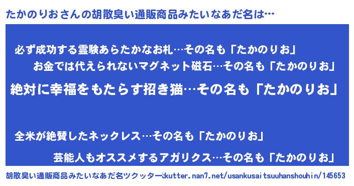 | 意味不明あだ名 | 『永久保存たかのりお』『自称たかのりお』 |