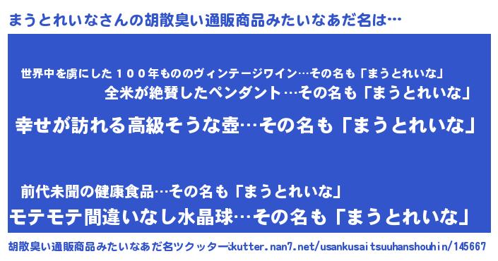 まうとれいなさんの胡散臭い通販商品みたいなあだ名をツクッター!