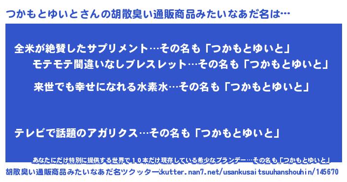 | ヘコむあだ名 | 『つかもとゆいと(苦笑)』『つかお』 |
