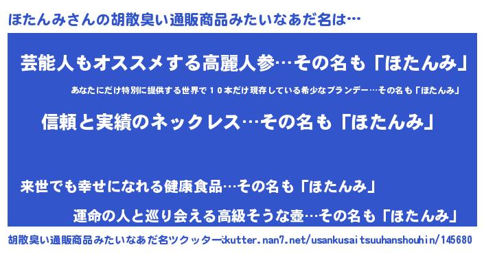 | 意味不明あだ名 | 『とにかく怪しいほたんみ』 |