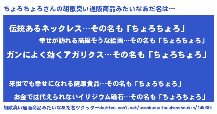 | ヘコむあだ名 | 『ちょっぺ』『なまこ酢』『ちょにー』 |