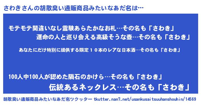 | 意味不明あだ名 | 『住所不定無職さわき(59歳)』 |
