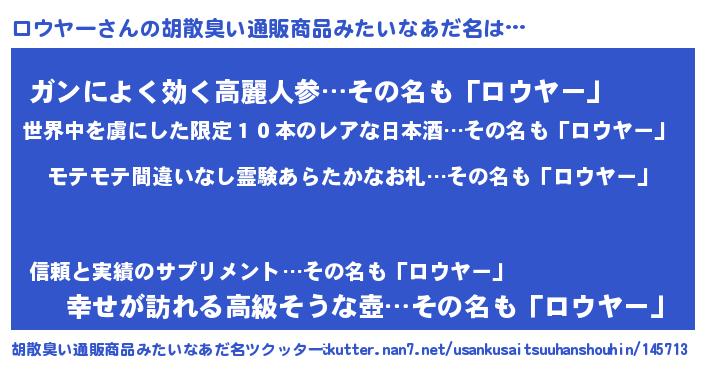 | ヒーロー風カッコイイあだ名 | 『スーパーロウヤー』『仮面ロウダー』 |