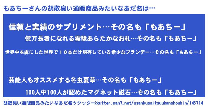 | ヘコむあだ名 | 『もあぷりん』『もあふぇ~』 |