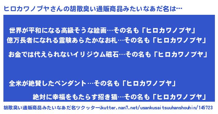 | ヒーロー風カッコイイあだ名 | 『慈愛の使者ヒロカワノブヤ』 |