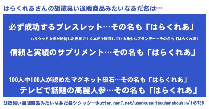 | 意味不明あだ名 | 『とにかく怪しいはらくれあ』 |
