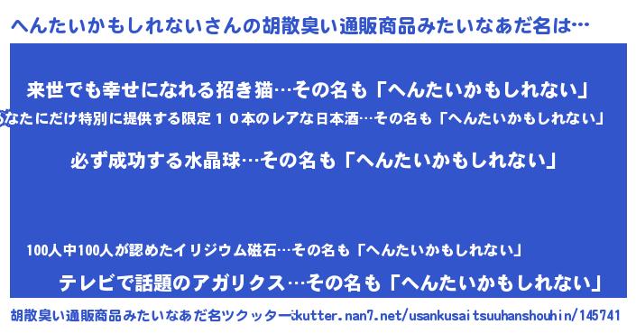 | 男性向けラノベタイトル風あだ名 | 『へんたいかもしれないの憂鬱』 |