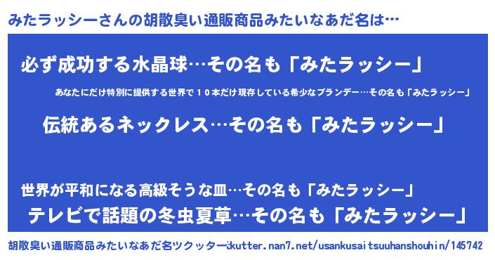 | 意味不明あだ名 | 『とにかく怪しいみたラッシー』 |
