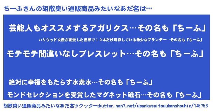 | 2回繰り返すあだ名 | 『ちょろちょろ』『ちーちー』 |