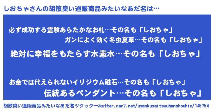 | ヘコむあだ名 | 『しおちゃ(遠い目)』『しおっふぃ~』 |