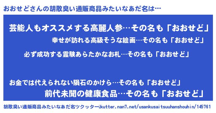 | 意味不明あだ名 | 『ペロリンおおせど』『自称おおせど』 |