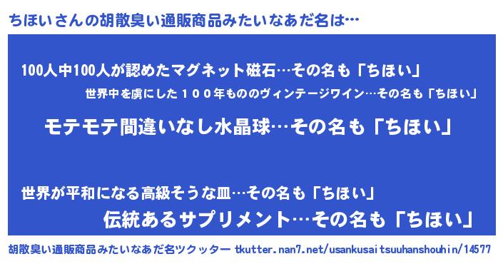 | ヒーロー風カッコイイあだ名 | 『スーパーチホイ』『友情の使者ちほい』 |