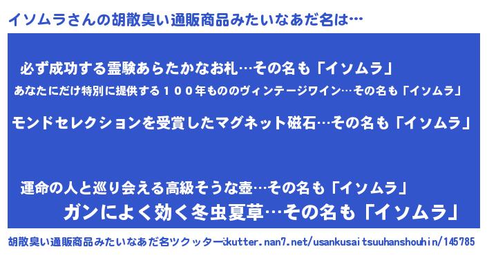 | 男性向けラノベタイトル風あだ名 | 『ノーゲーム・ノーイソムラ』 |