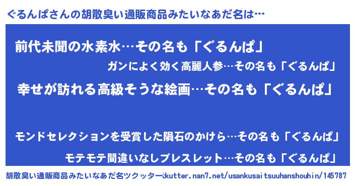 | ヒーロー風カッコイイあだ名 | 『ウルトラぐるんぱマン』『ネオグルンパ』 |