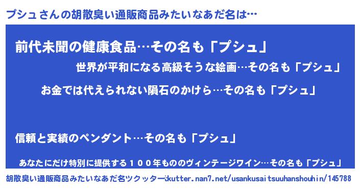 | 女子向けラノベタイトル風あだ名 | 『プシュ恋絵巻』『プシュの契約王妃』 |