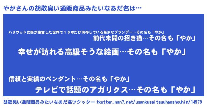 | ヘコむあだ名 | 『牛乳』『やか(笑)』『やかを』 |
