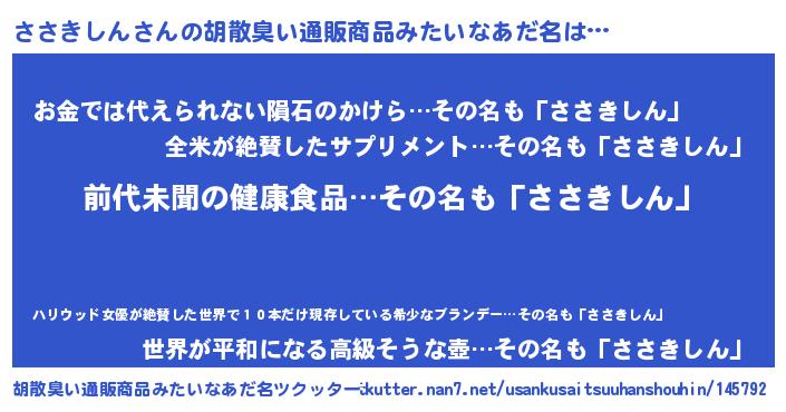 | ヘコむあだ名 | 『ささきしん(爆)』『酢こんぶ』 |