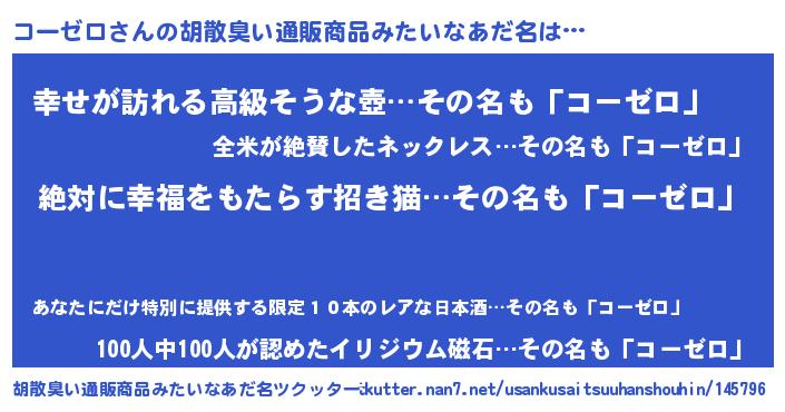 | 意味不明あだ名 | 『永久保存コーゼロ』 |
