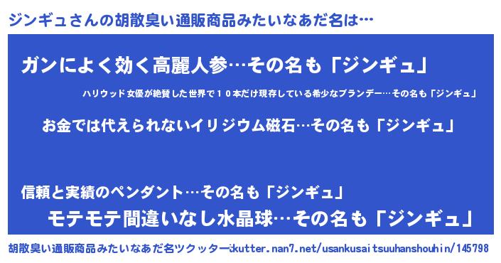 | ヒーロー風カッコイイあだ名 | 『愛の使者ジンギュ』『スーパージンギュ』 |