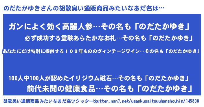 | 意味不明あだ名 | 『住所不定無職のだたかゆき(5歳)』 |