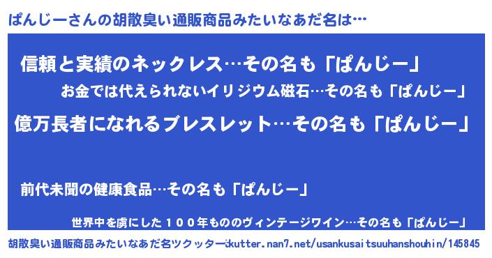 | 伝説のあだ名 | 『封印されし竜騎士ぱんじー』 |
