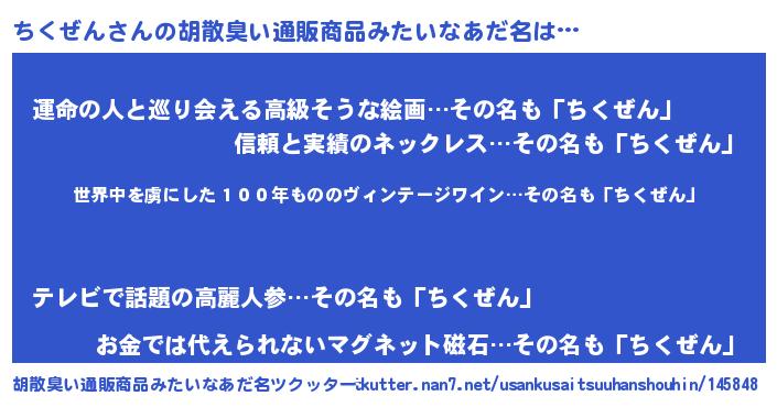 ちくぜんさんの胡散臭い通販商品みたいなあだ名をツクッター!